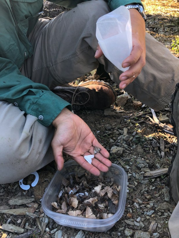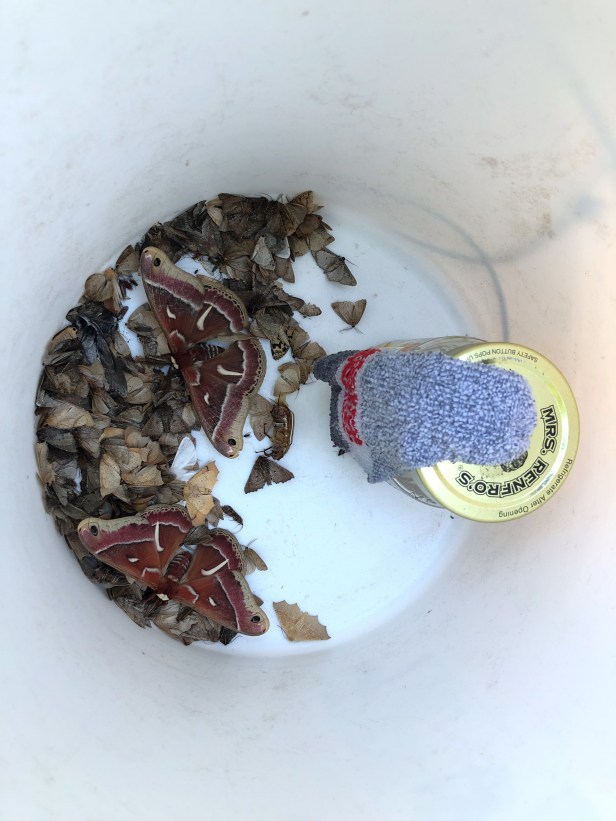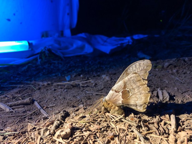 The next morning we packed up everything and went to collect the buckets and their contents. We were surprised to see such little insect density in the traps, but were glad to see two large Hyalophora euryalus moths had made it into one of the buckets. With this being the trial run for these bucket traps I would say they are fairly efficient and with a little modification can be even more effective. What we found was the UV light that was used seemed to only attract moths, so in the future, we may try lights varying brightness and UV signatures.